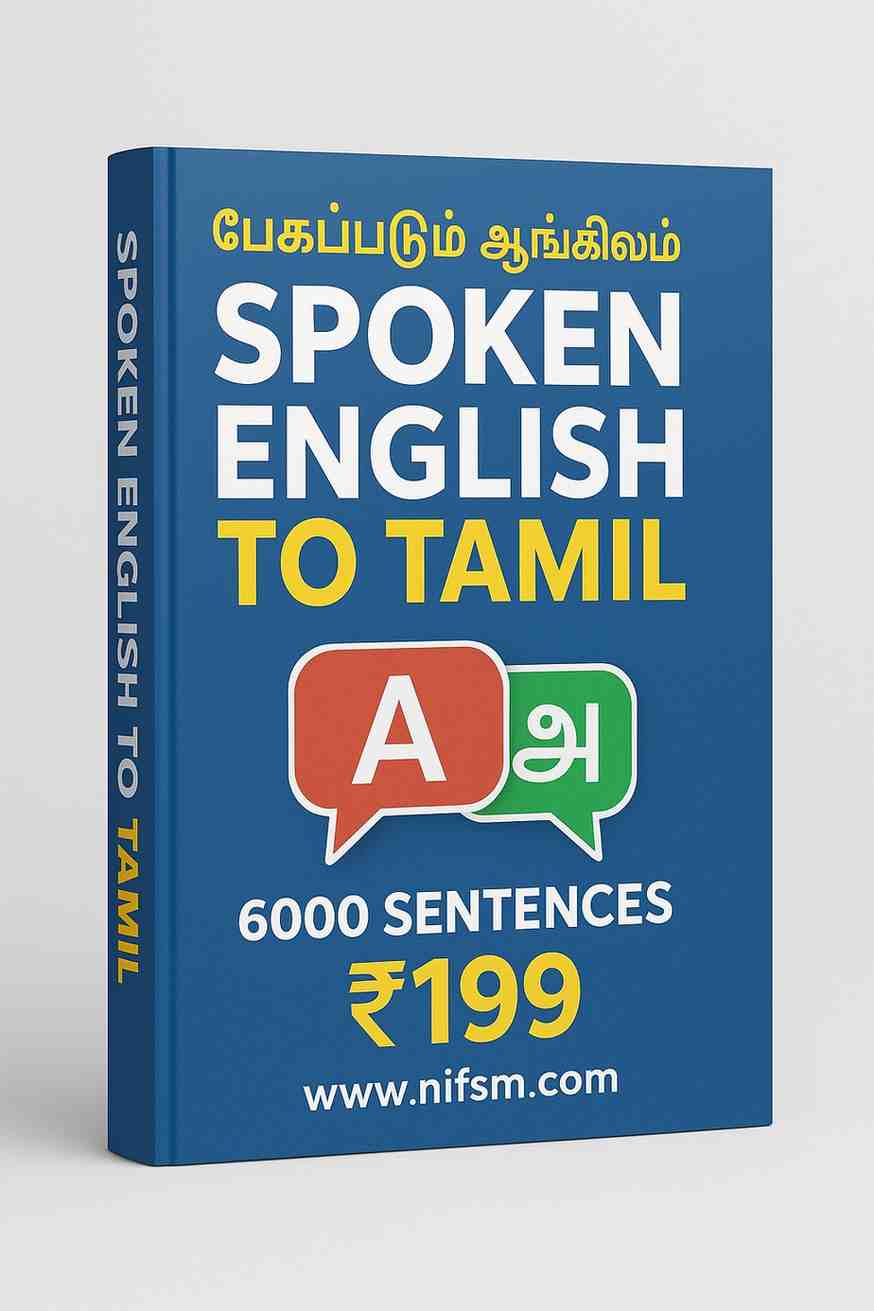 Learn English faster with this powerful Tamil–to–English sentence guide. This ebook contains 6000 practical daily-use sentences, carefully selected for quick learning, spoken fluency, and real-life conversation improvement.